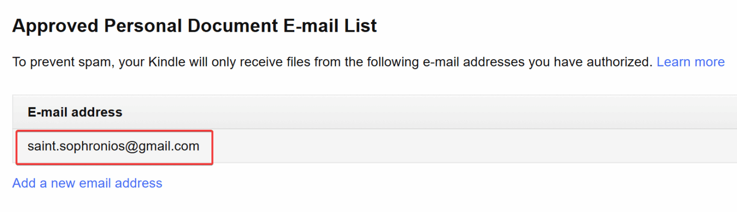 - Enter this email address: saint.sophronios@gmail.com and select Add Address.